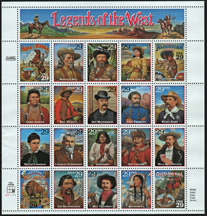Legends of the West Complete Pane of Twenty 29 Cent Stamps Scott 2869