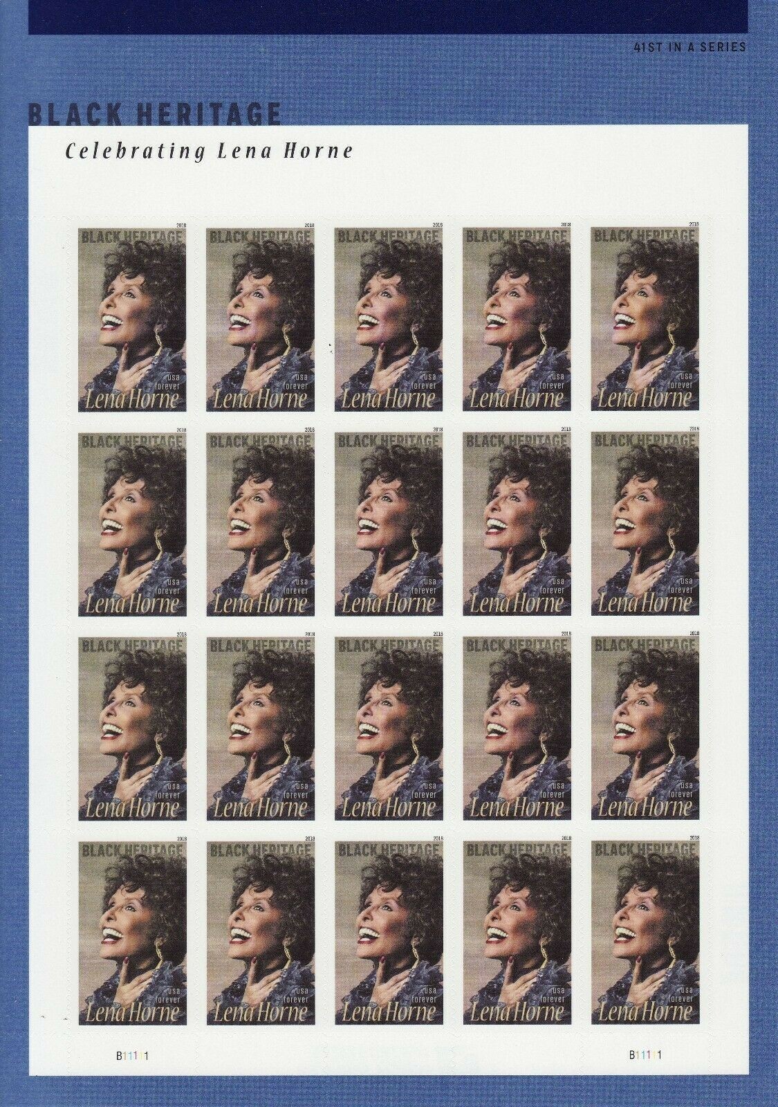 Lena Horne Pane of Twenty Current Rate Postage Stamps Scott 5259