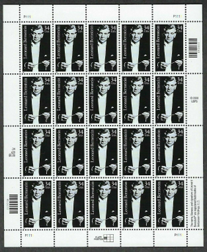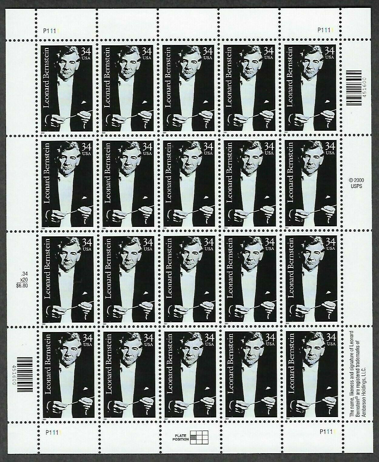 Leonard Bernstein Sheet of Twenty 34 Cent Postage Stamps Scott 3521