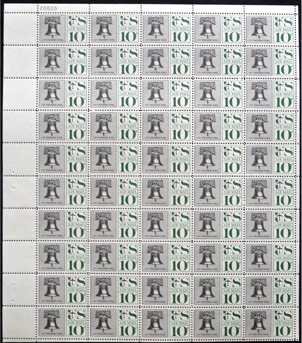 Liberty Bell Sheet of 50 10 Cent Airmail Postage Stamps Scott C57