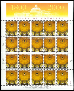 Library of Congress Sheet of Twenty 33 Cent Postage Stamps Scott 3390