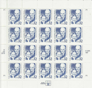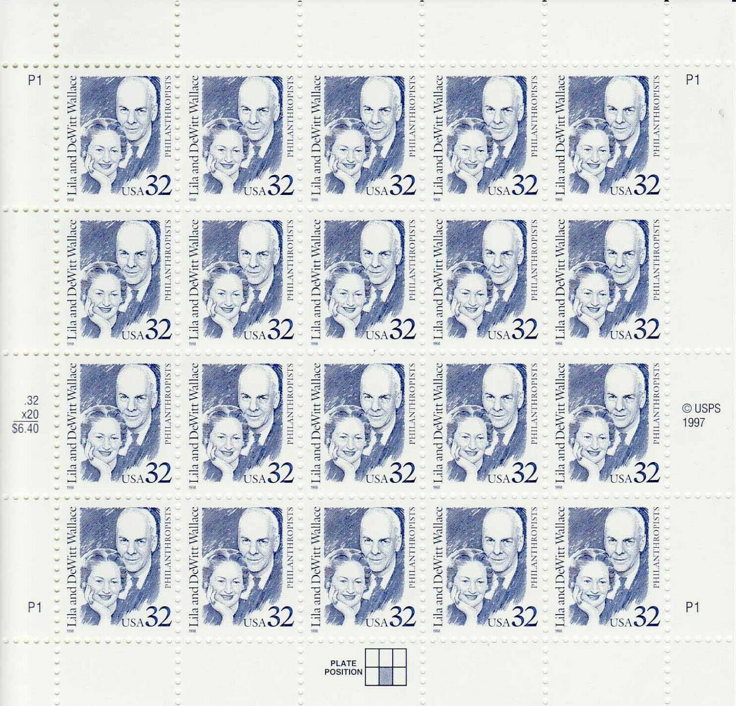 Lila & Dewitt Wallace Sheet of Twenty 32 Cent Postage Stamps Scott 2936
