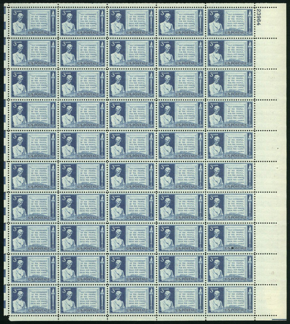 Lincoln's Gettysburg Address Sheet of Fifty 5 Cent Postage Stamps Scott 978