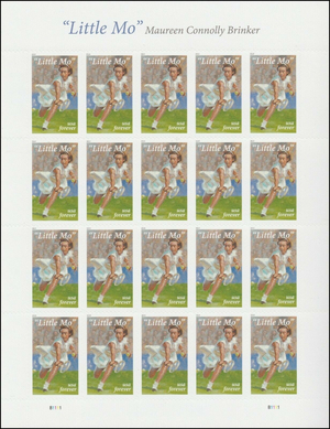 Little Mo Tennis Maureen Brinker - Pane of 20 Current Rate Stamps Scott 5377