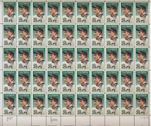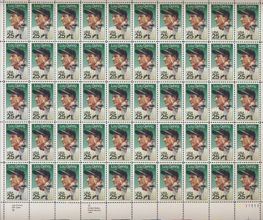 Lou Gehrig Baseball Player Sheet of Fifty 25 Cent Postage Stamps Scott 2417