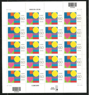 Love Complete Sheet of Twenty 60 Cent Postage Stamps Scott 3658