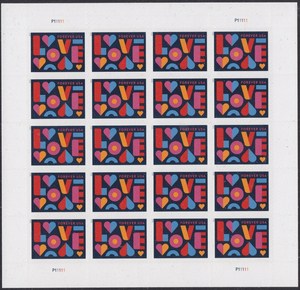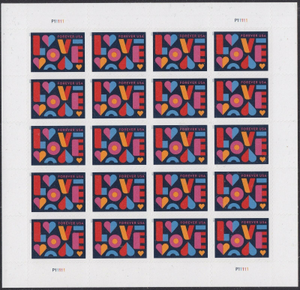 Love Hearts Full Sealed Pad of 100 Sheets (2000 Stamps) Scott 5543