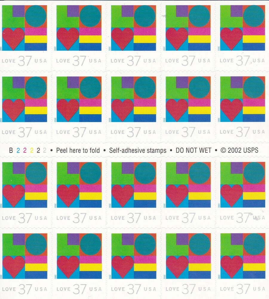 Love Stamp Booklet of Twenty 37 Cent Stamps Scott 3657a