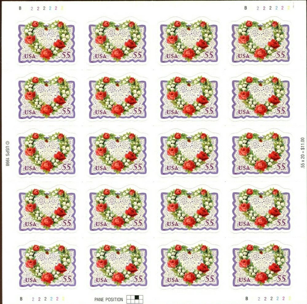 Love: Victorian Heart 55 Cent Stamps - Sheet of 20 Postage Stamps Scott 3275