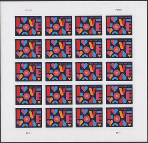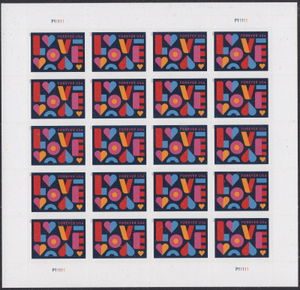 Love Wedding Sheet 20 Current Rate Postage Stamps Scott 5543