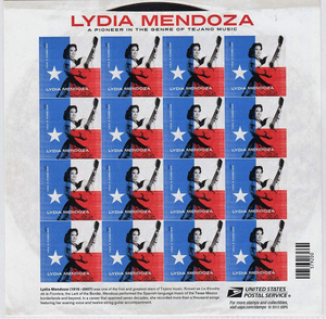 Lydia Mendoza sheet of 16 Current Rate Stamps Scott 4786