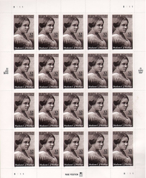 Madam C.J. Walker Black Heritage Sheet of Twenty 32 Cent Stamps Scott 3181