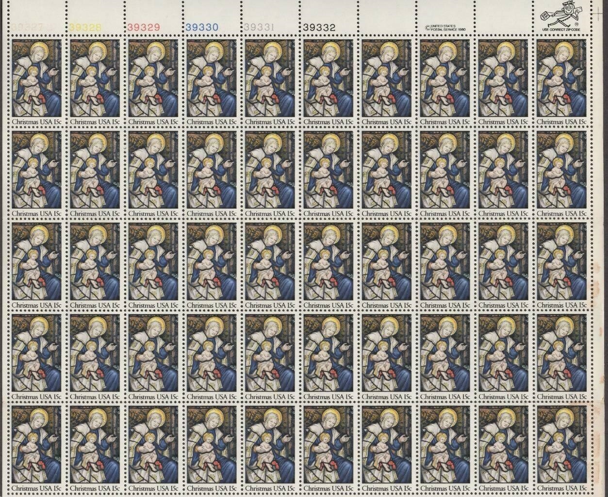 Madonna & Child Sheet of Fifty 15 Cent Postage Stamps Scott 1842