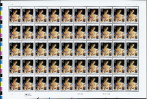 Madonna & Child Sheet of Fifty 32 Cent Postage Stamps Scott 3107