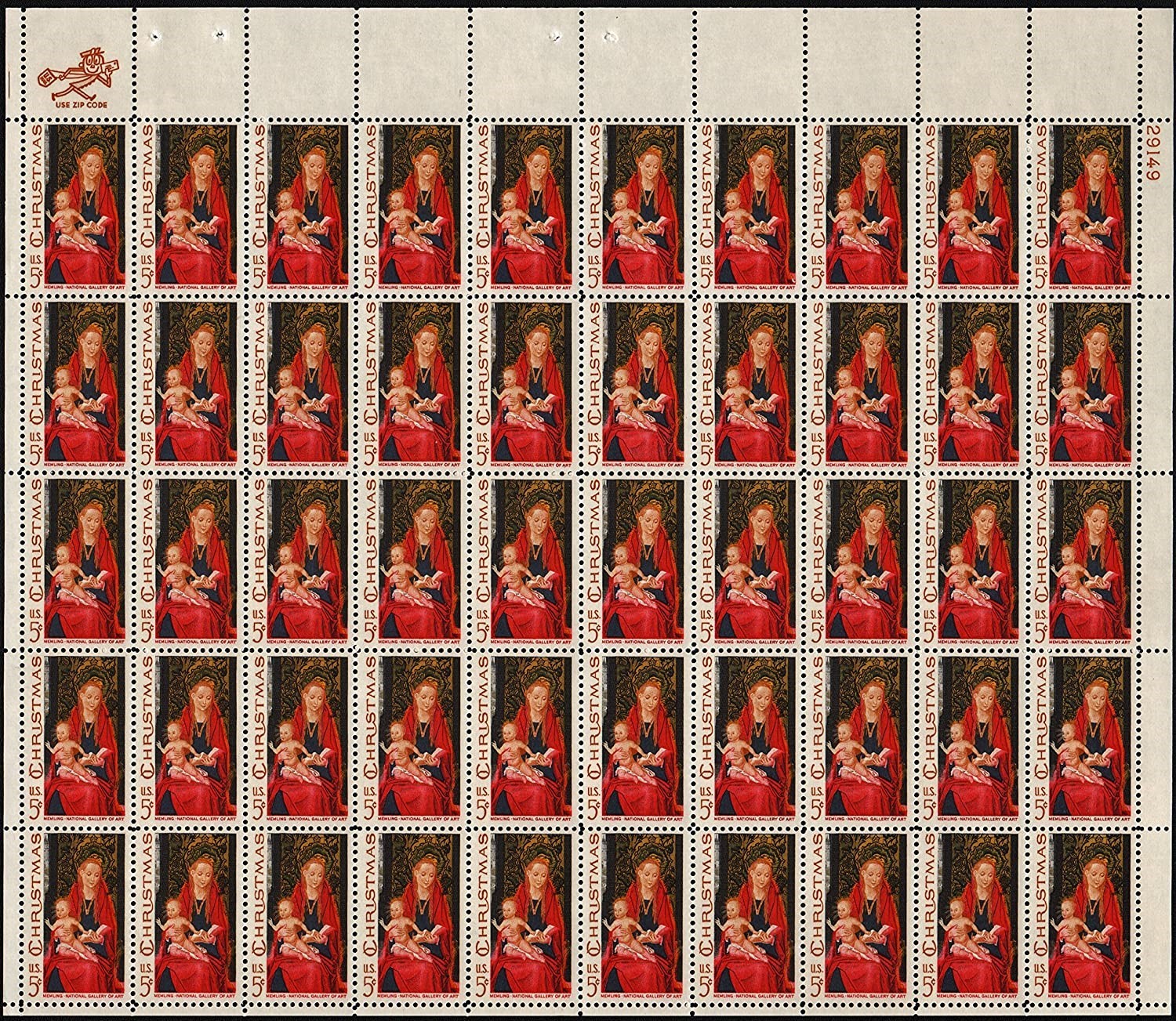Madonna and Child Sheet of Fifty 5 Cent Postage Stamps Scott 1336