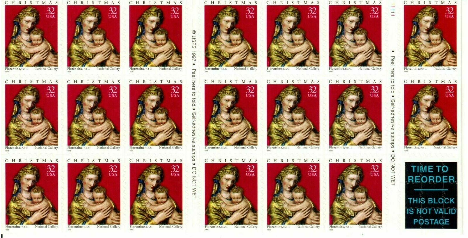 Madonna with Child Pane of Twenty 32 Cent Postage Stamps Scott 3244a