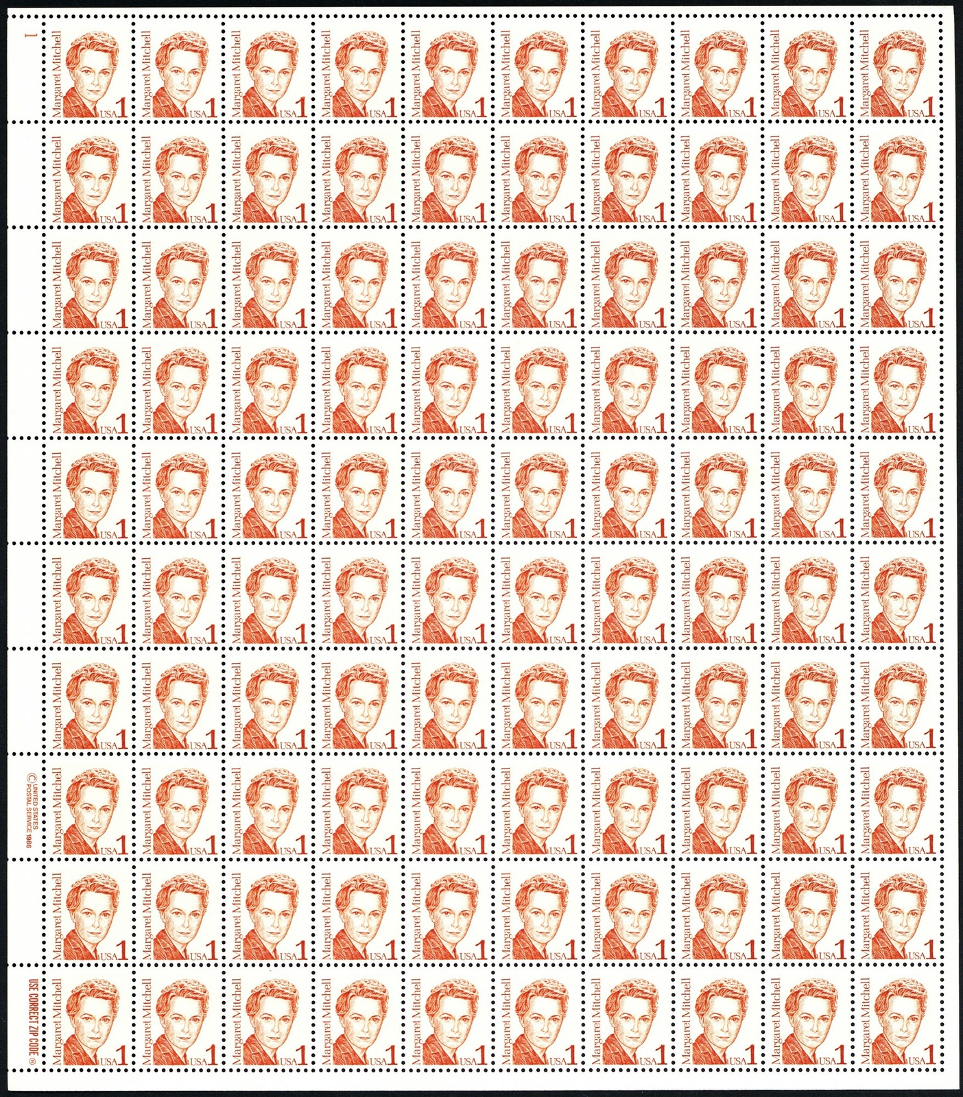 Margaret Mitchell Sheet of 100 - 1 Cent Postage Stamps Scott 2168
