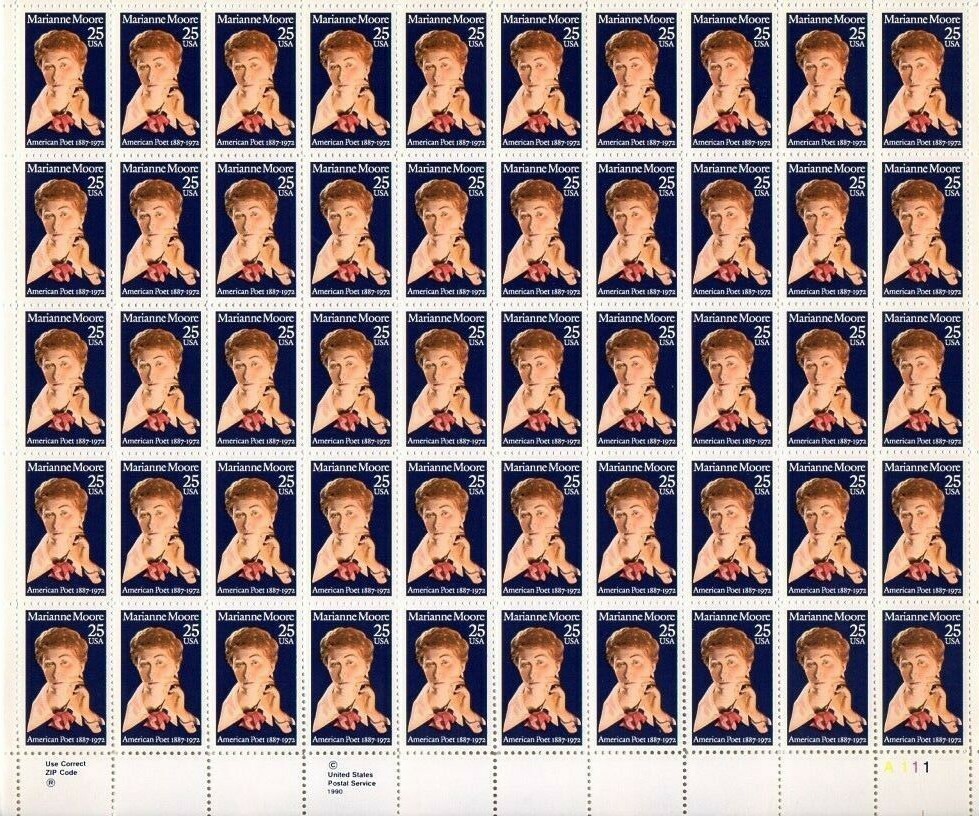 Marianne Moore Sheet of Fifty 25 Cent Postage Stamps Scott 2449