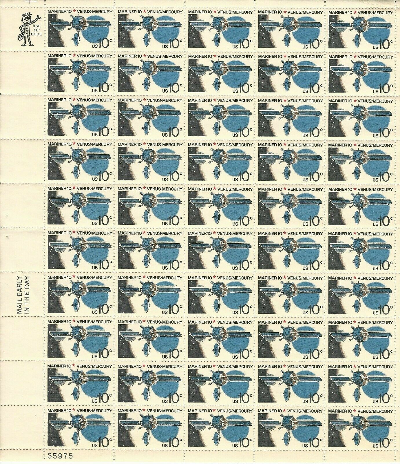 Mariner 10 Complete Sheet Fifty 10 Cent Postage Stamps Scott 1557