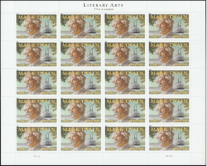 Mark Twain Sheet of Twenty Current Rate Stamps Scott 4545