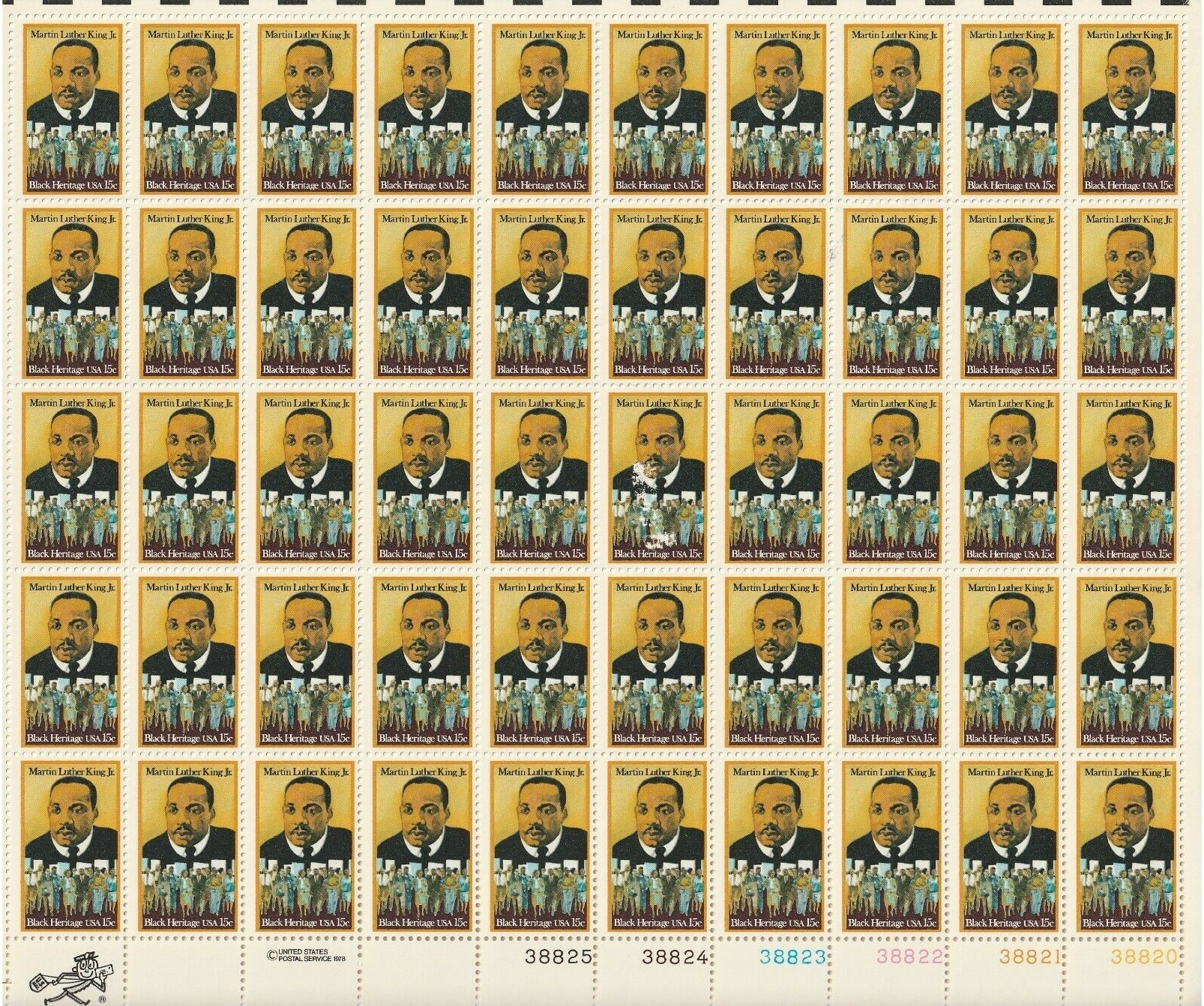 Martin Luther King Jr Black Heritage Sheet of Fifty 15 Cent Stamps Scott 1771