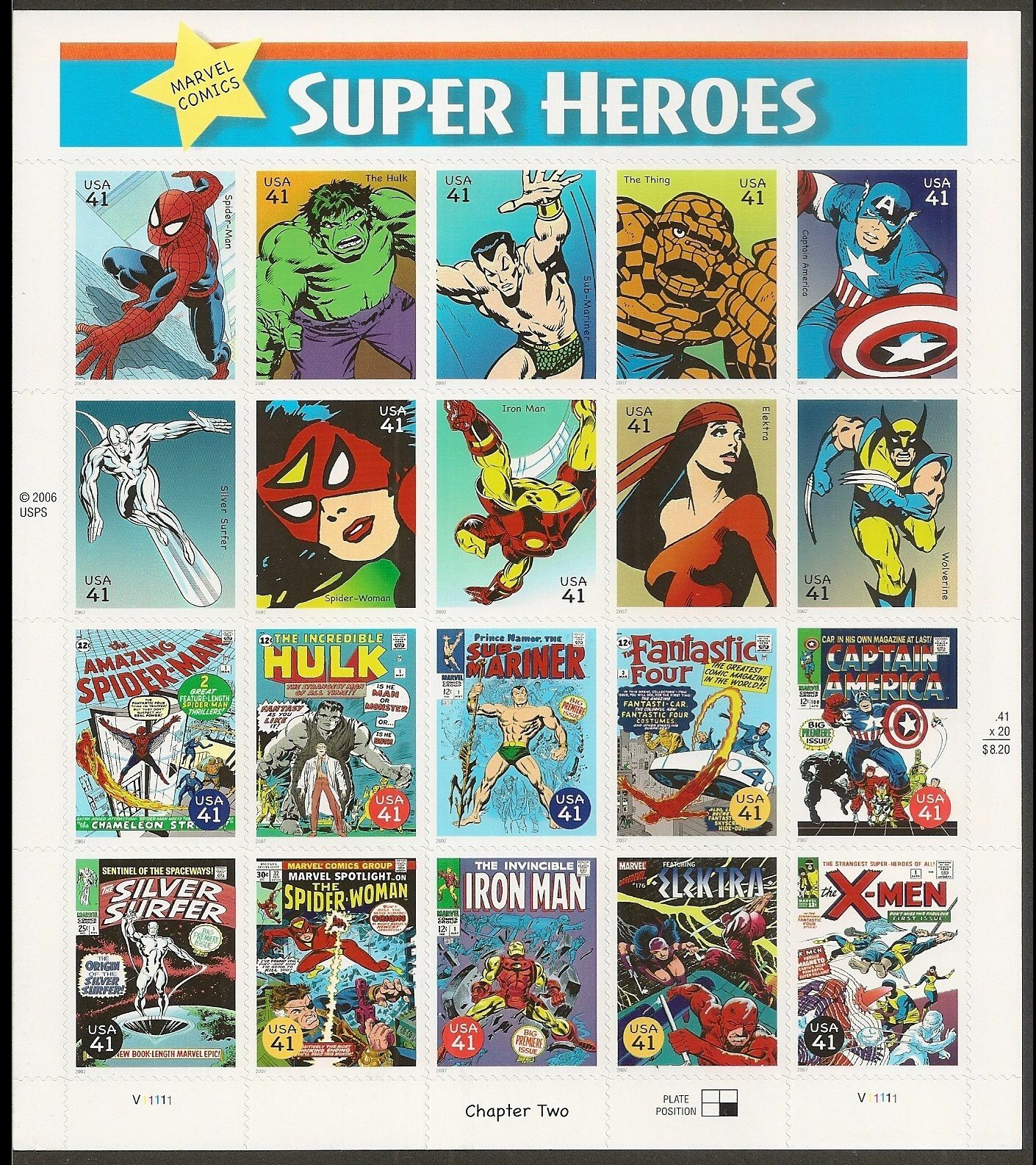 Marvel Comics Super Heroes Sheet of Twenty 41 Cent Stamps Scott 4159 By USPS