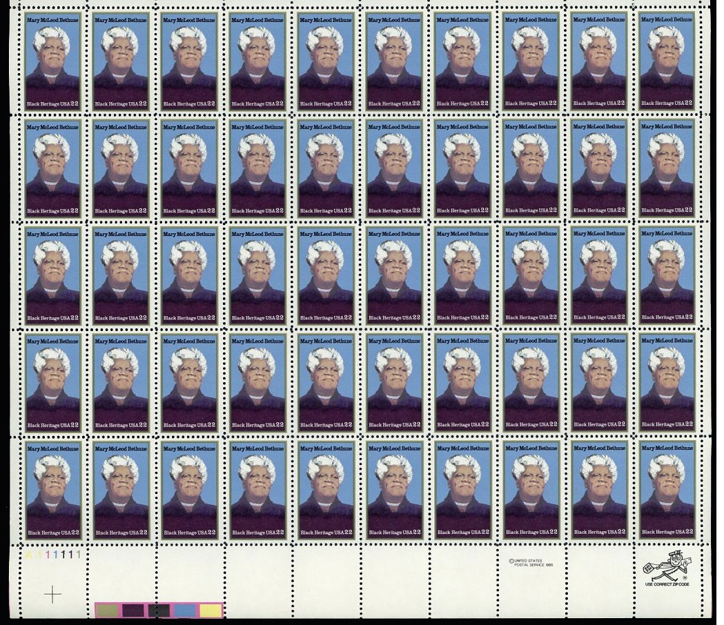 Mary McLeod Bethune Sheet of Fifty 22 Cent Postage Stamps Scott 2137