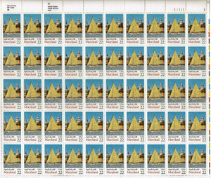 Maryland Statehood Sheet of Fifty 22 Cent Postage Stamps Scott 2342