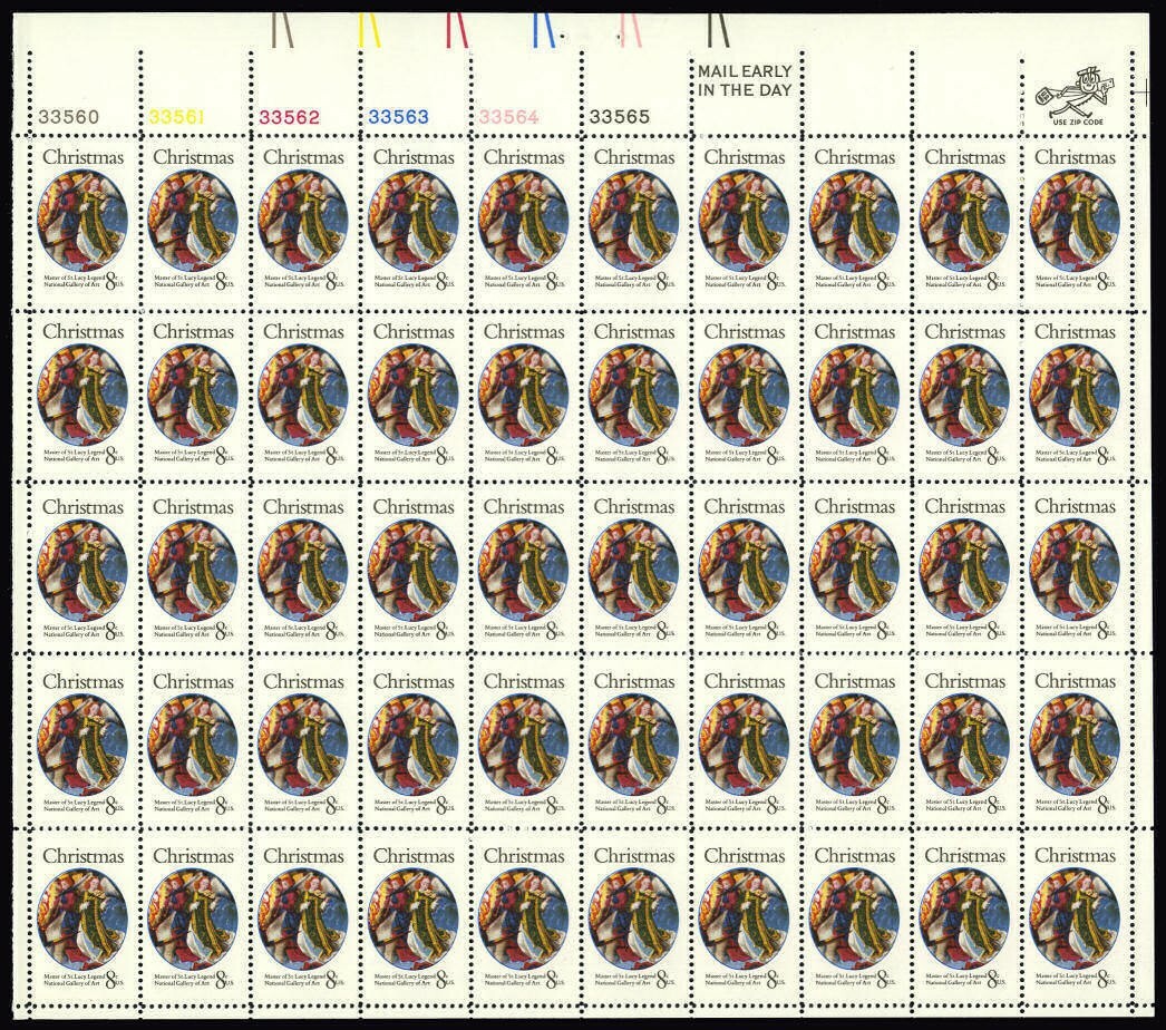 Master of St Lucy Christmas Sheet of Fifty 8 Cent Postage Stamps Scott 1471