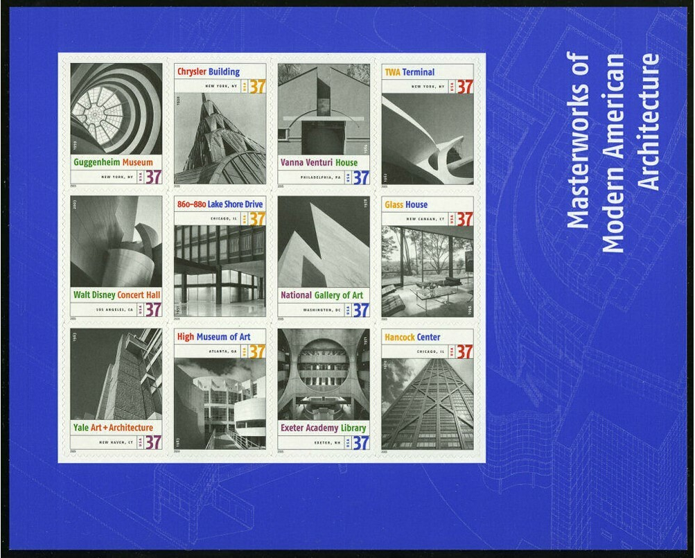 Masterworks of Modern American Architecture Sheet of Twelve Scott 3910