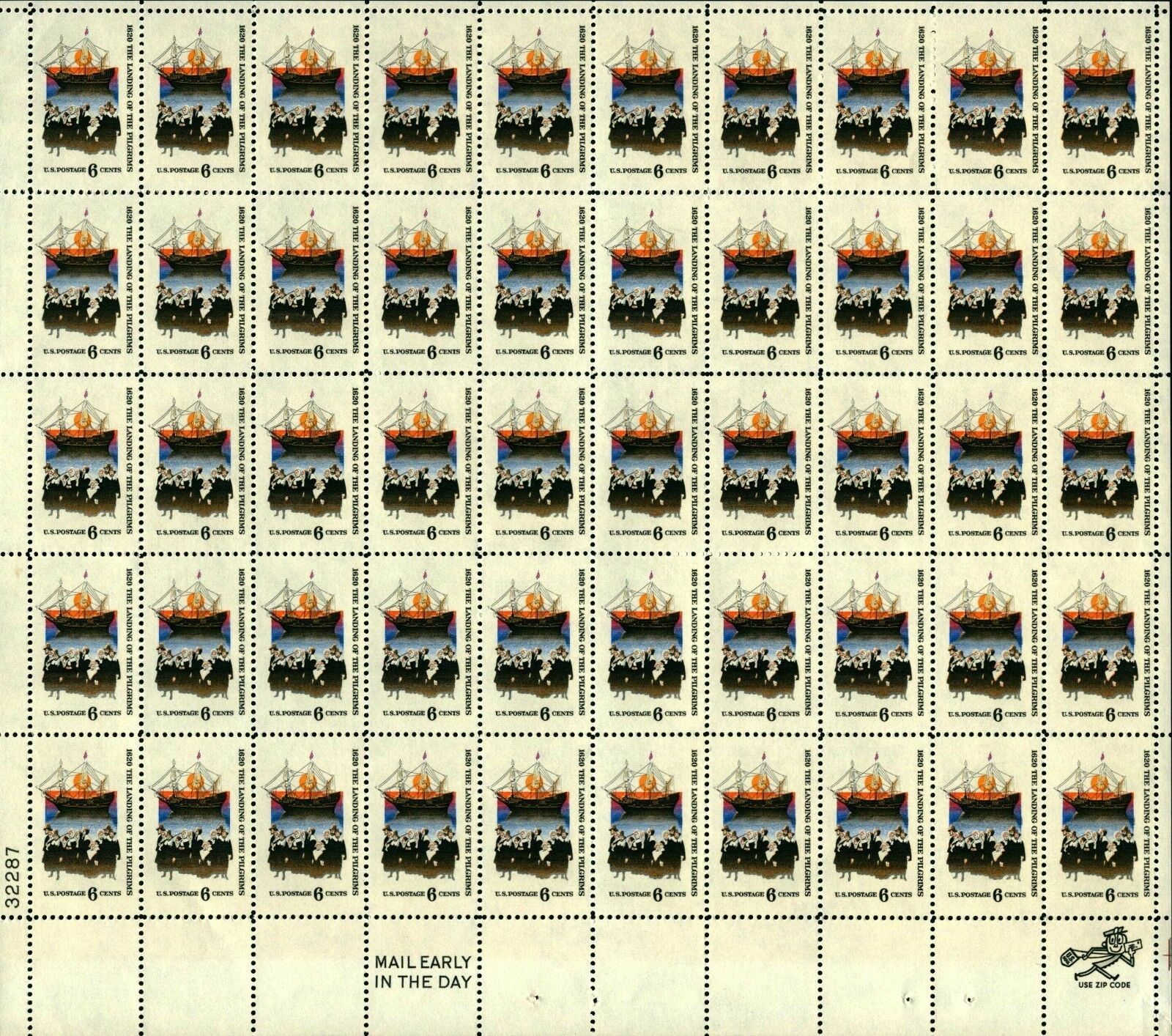 Mayflower and Pilgrims Sheet of Fifty 6 Cent Postage Stamps Scott 1420