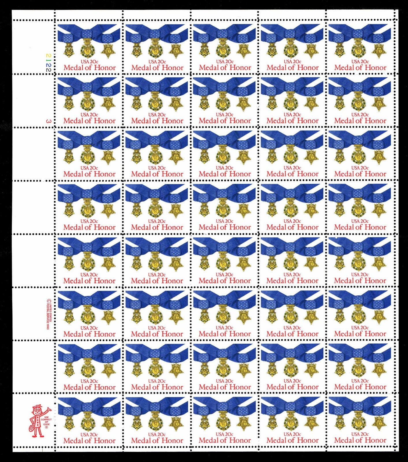 Medal of Honor Sheet of Forty 20 Cent Postage Stamps Scott 2045