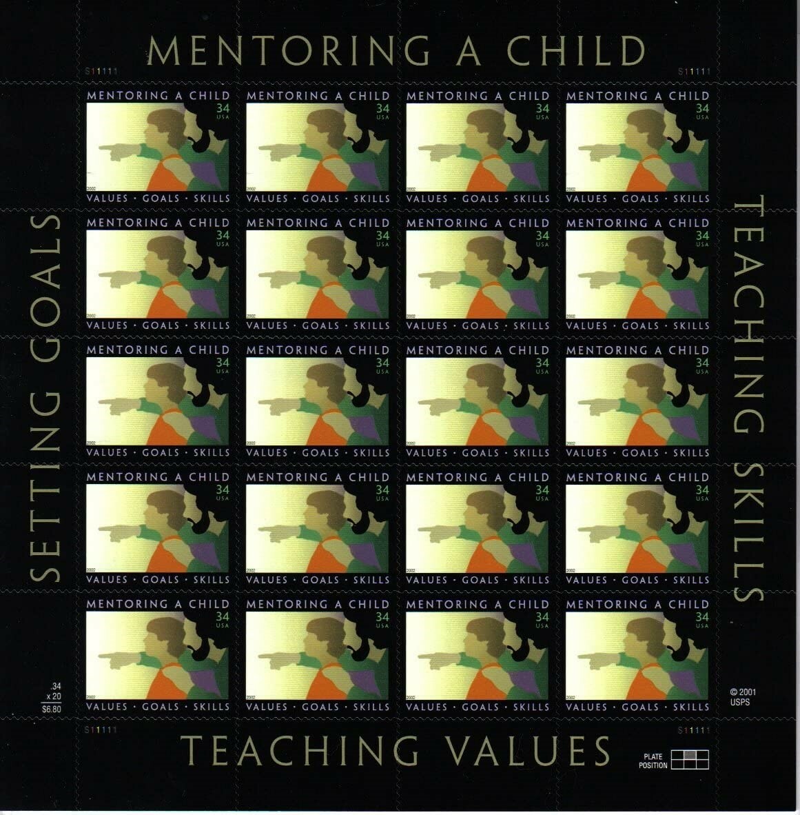 Mentoring a Child Sheet of Twenty 34 Cent Postage Stamp Scott 3556