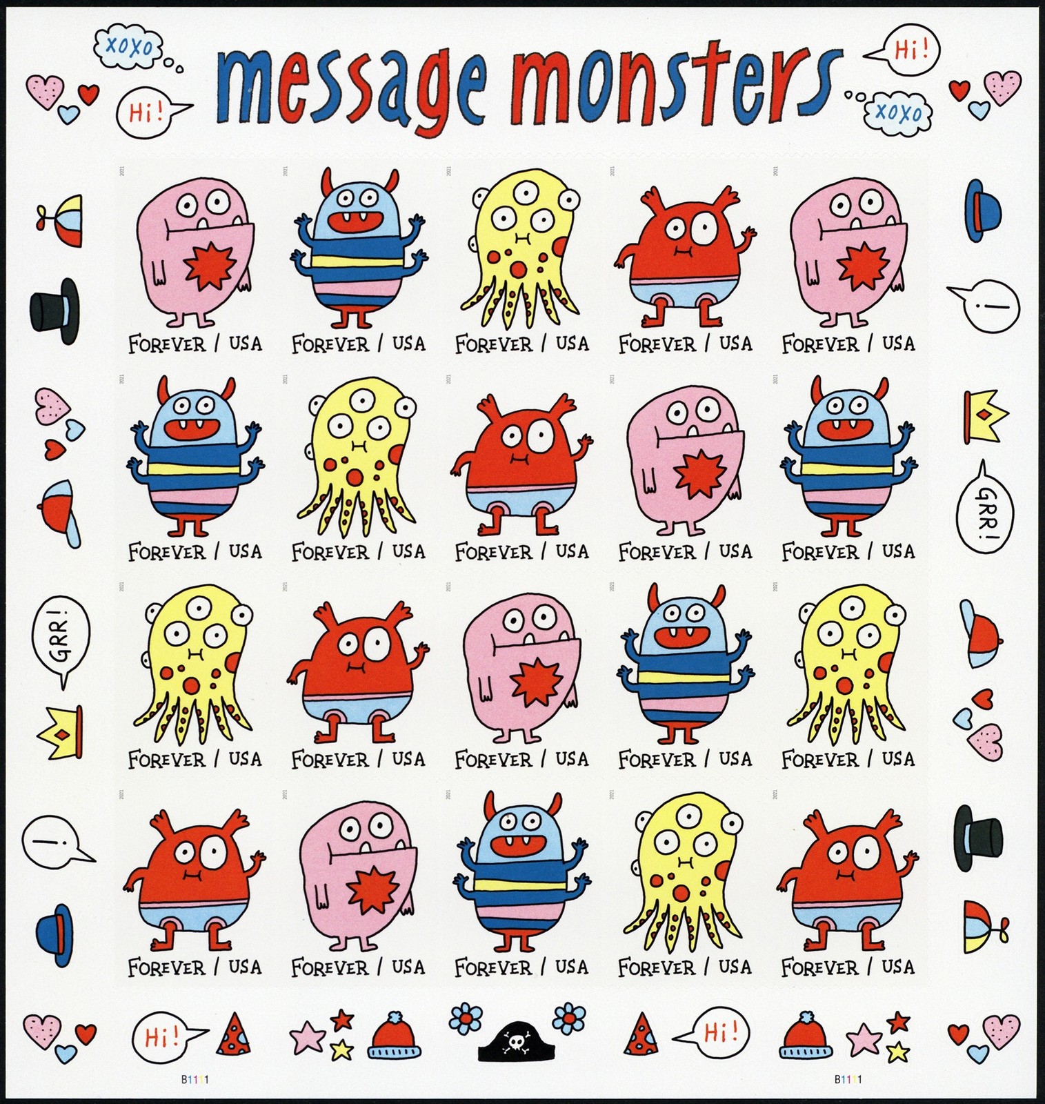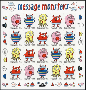 Message Monsters Sheet of 20 Current Rate Postage Stamps Scott 5639
