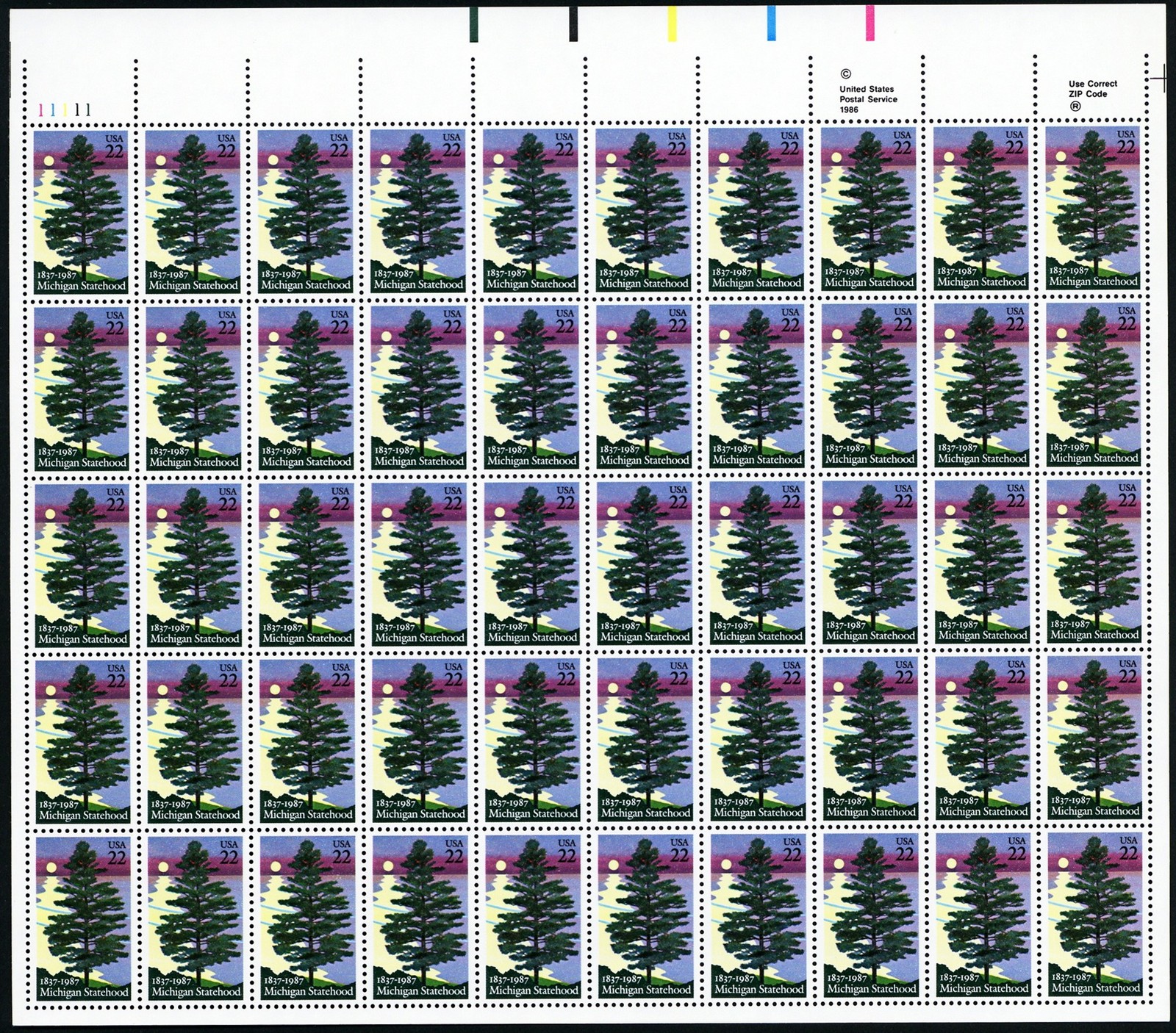 Michigan Statehood Sheet of Fifty 22 Cent Postage Stamps Scott 2246