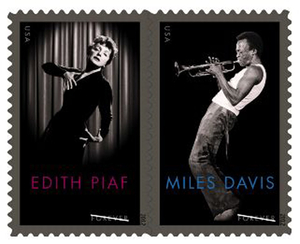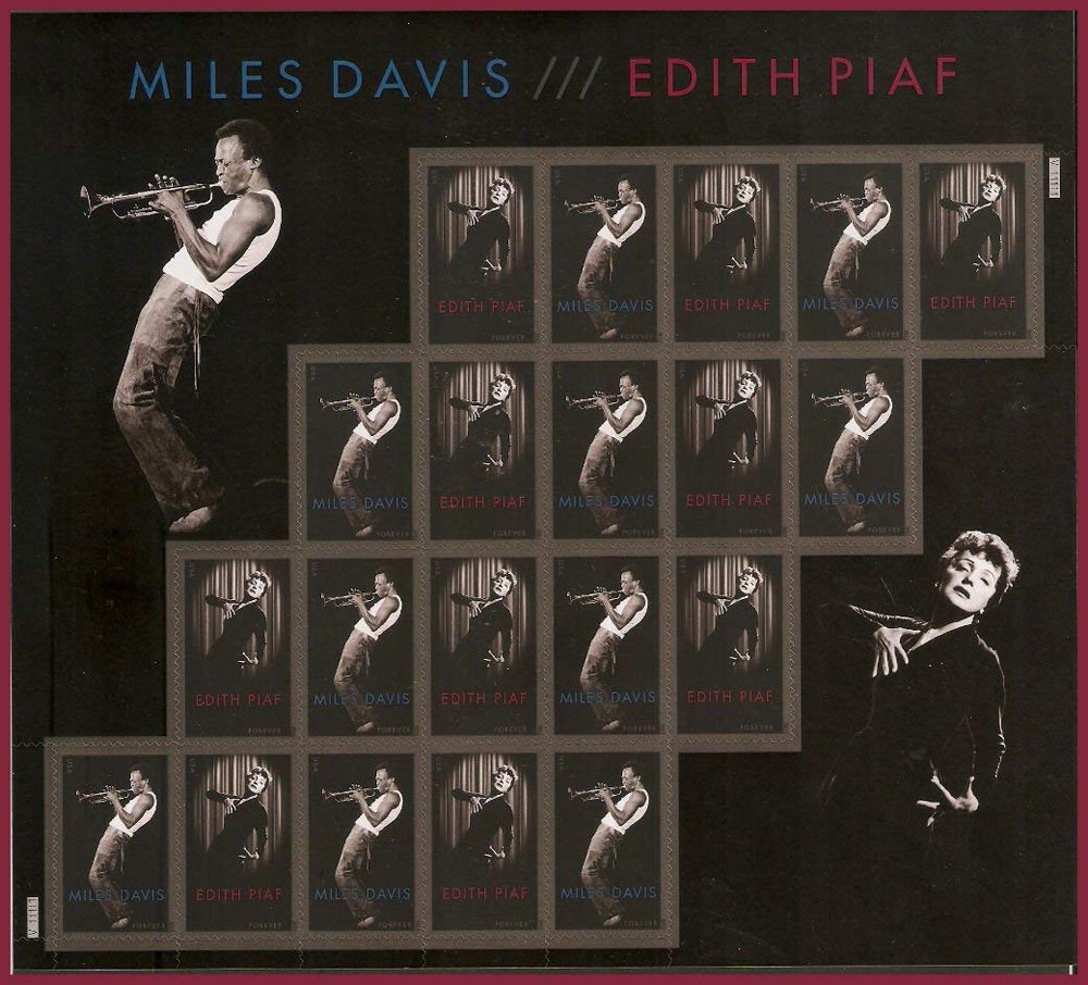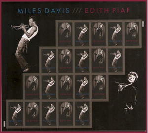 Miles Davis/Edith Piaf Sheet of 20 Current Rate Stamps Scott 4692-93