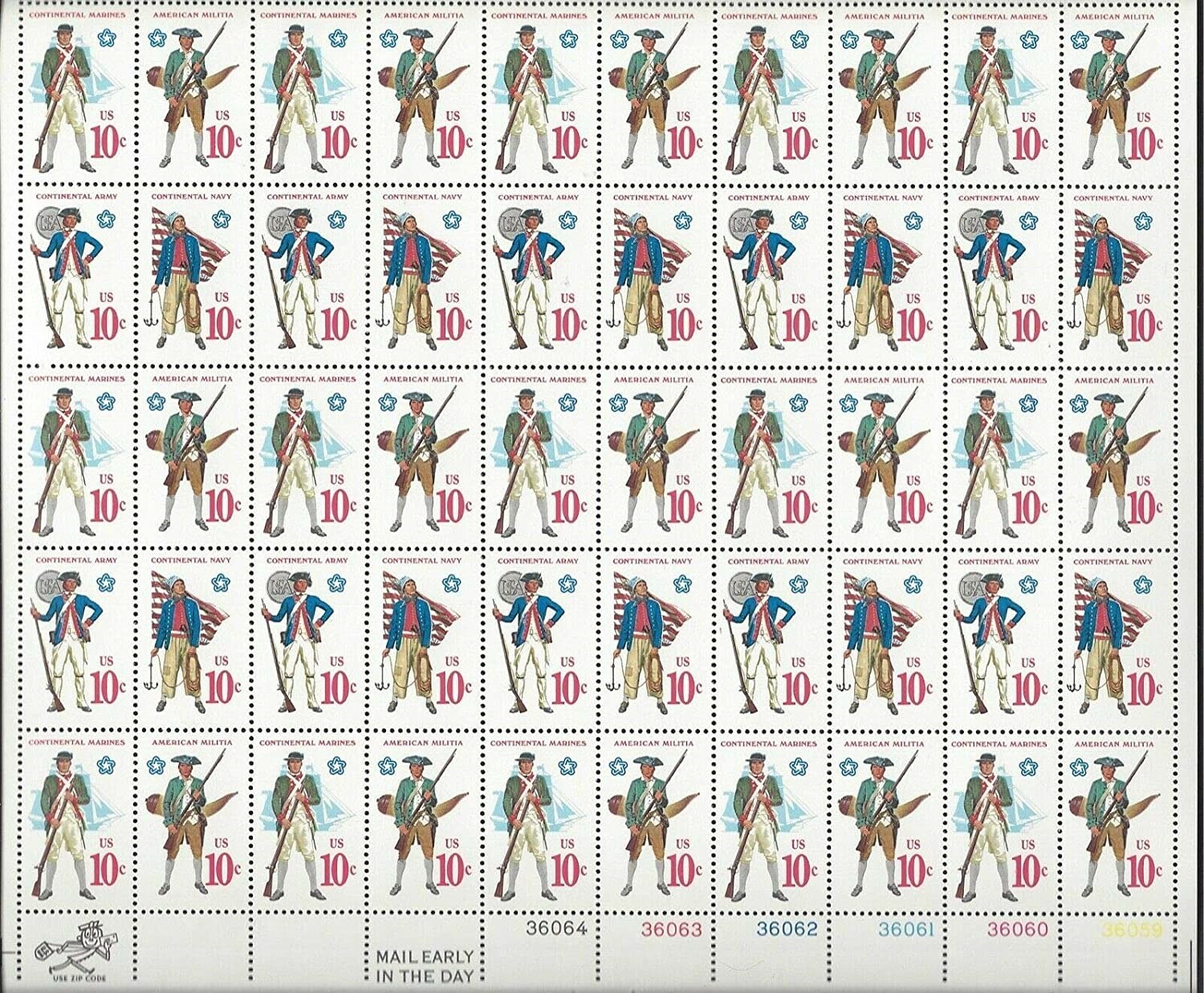 Military Uniforms Sheet of Fifty 10 Cent Postage Stamps Scott 1565-68