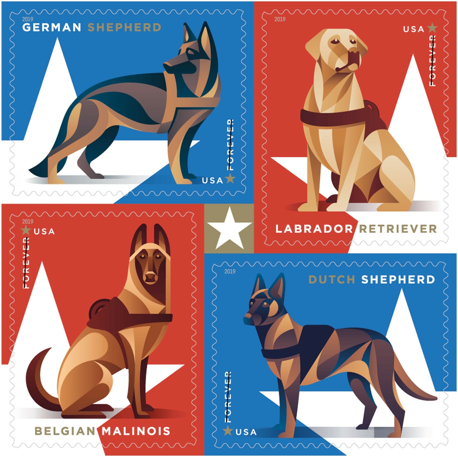 Military Working Dogs Sheet of 20 Current Rate Stamps Scott 5408b