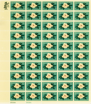 Mississippi Magnolia Complete Sheet of Fifty 5 Cent Postage Stamps Scott 1337