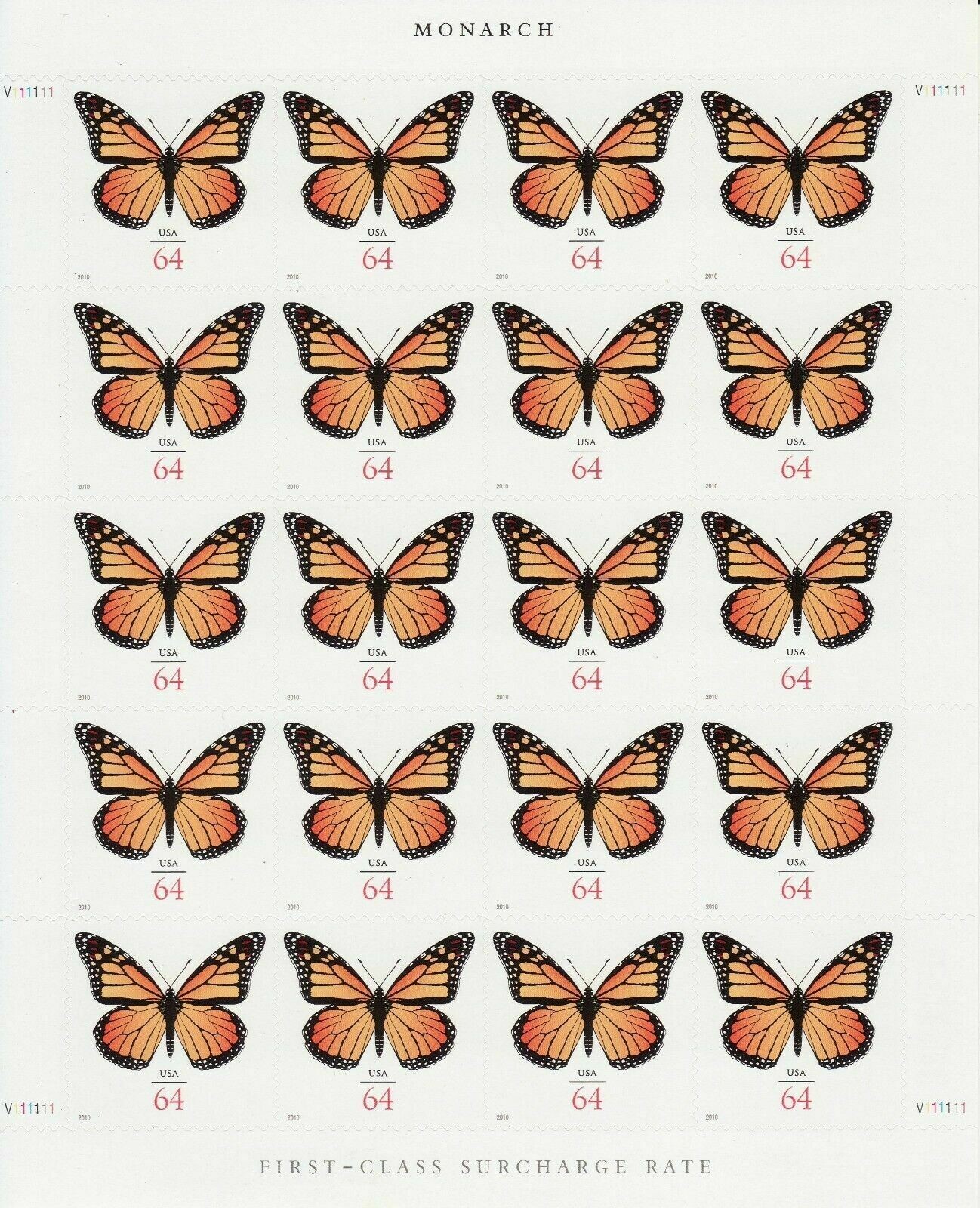 Monarch Butterfly Sheet of Twenty 64 Cent Stamps Scott 4462