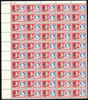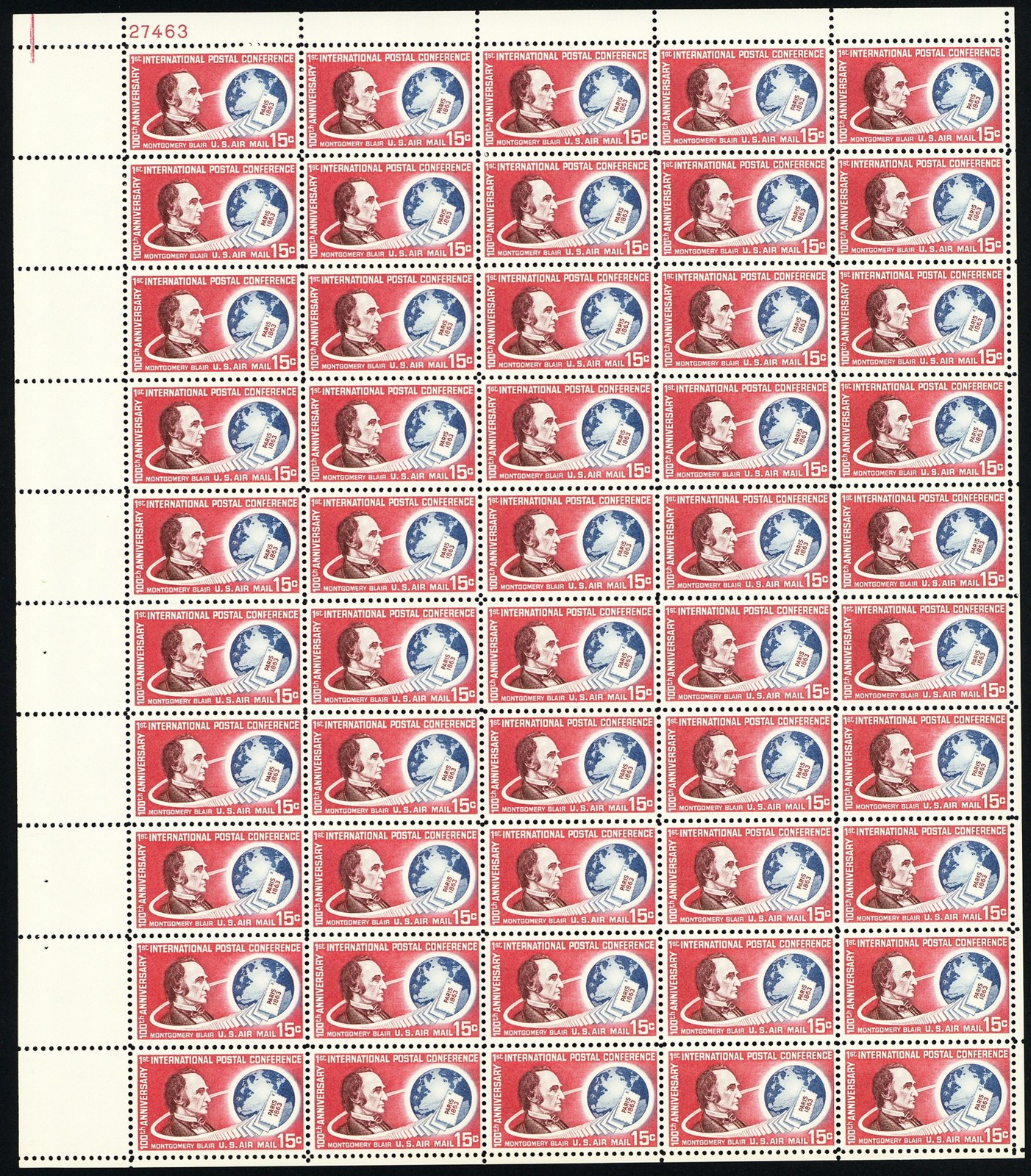 Montgomery Blair Full Sheet of Fifty 15 Cent Airmail Postage Stamps Scott C66