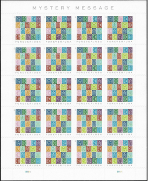 Mystery Message Sheet of 20 Current Rate Postage Stamps Scott 5614