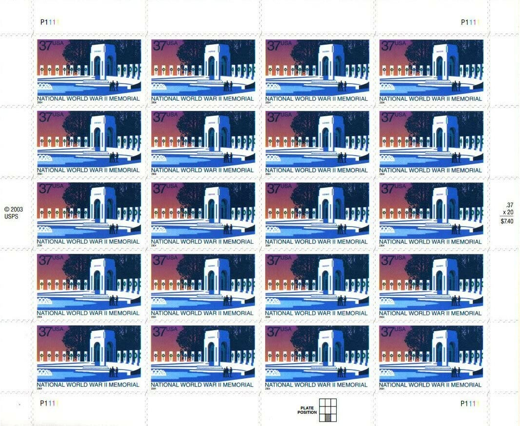 National WWII Memorial Sheet of Twenty 37 Cent Postage Stamps Scott 3862