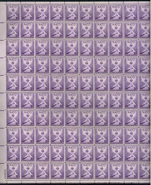 NATO Issue Sheet of 100 - 7 Cent Postage Stamps Scott 1008