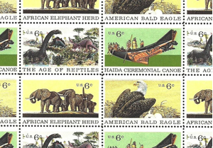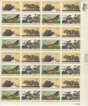 Natural History Sheet of Thirty Two 6 Cent Postage Stamps Scott 1387-90