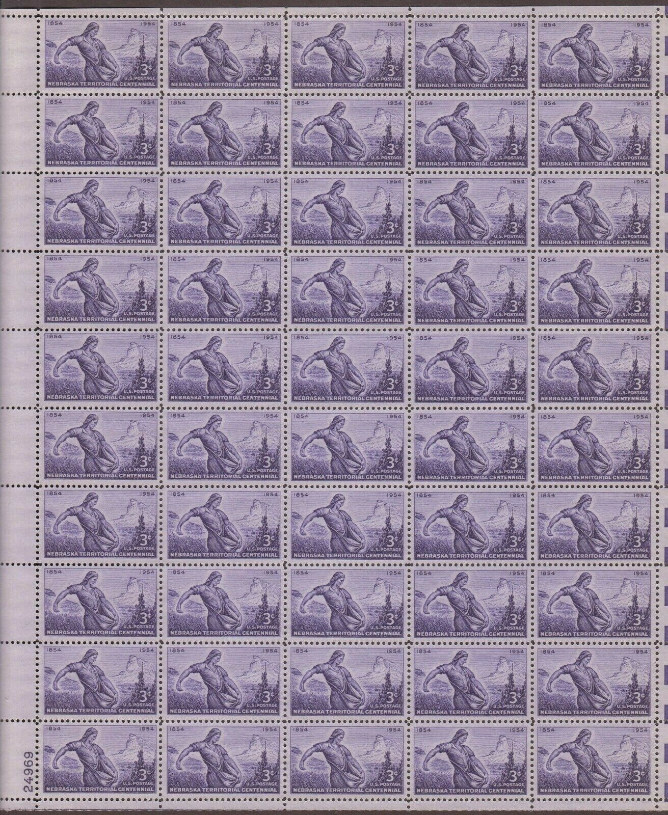 Nebraska Territory Sheet of Fifty 3 Cent Postage Stamps Scott 1060