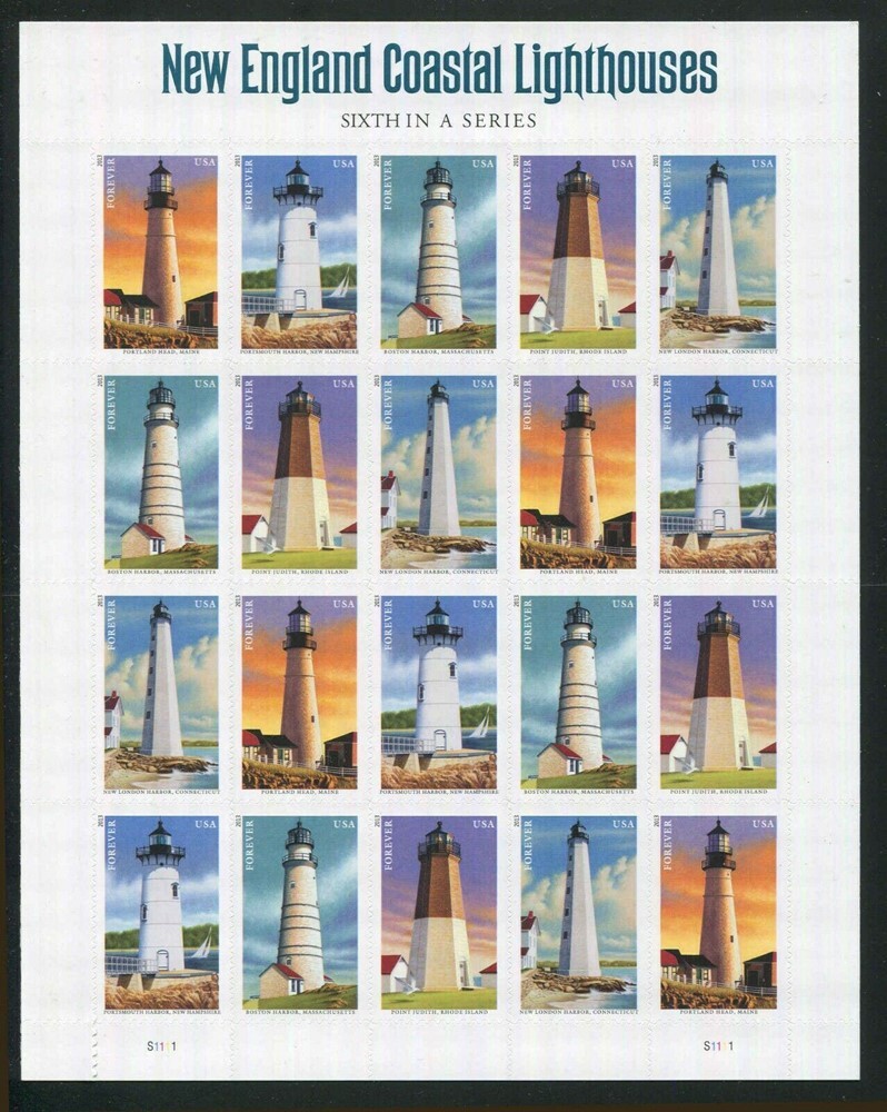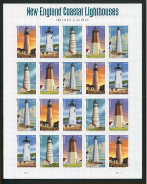 New England Coastal Lighthouses Sheet of 20 Current Rate Stamps Scott 4791-95