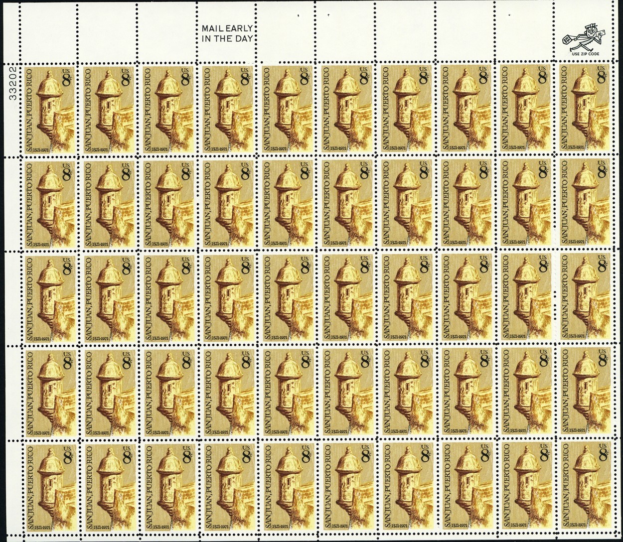 New San Juan Puerto Rico Sheet of Fifty 8 Cent Postage Stamps Scott 1437