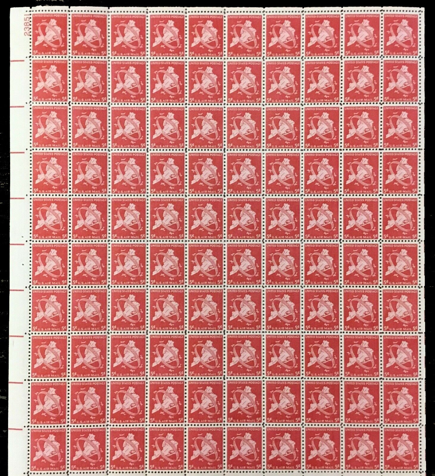 New York City Sheet of 100 - 5 Cent Airmail Postage Stamps Scott C38