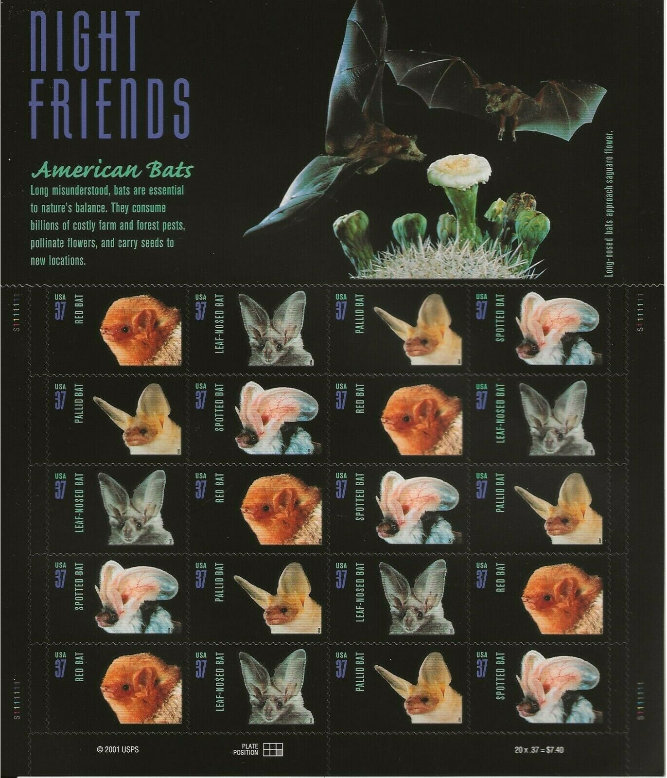 Night Friends American Bats Sheet Sheet of Twenty 37 Cent Postage Stamps 3661-64